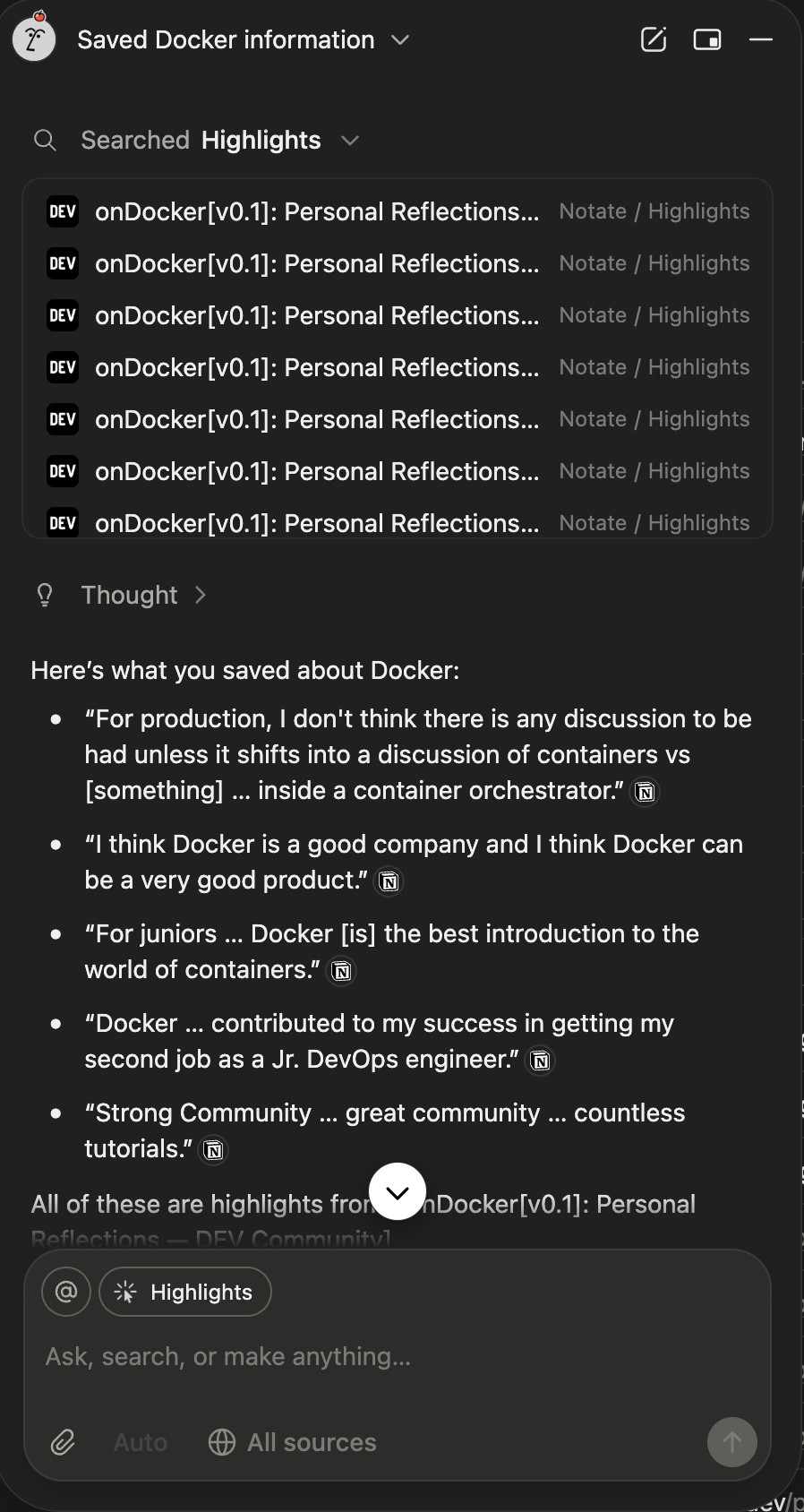 Then simply prompt Notion-AI, and it will go through your entire personal context base and give you the exact information you need. It can even create documents. The point is... you don't have to spend your precious time managing all that knowledge.